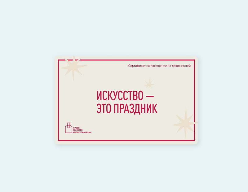 Сертификат дает право посещения Музея русского импрессионизма, а также скидку 10% в музейном магазине на -1 этаже.