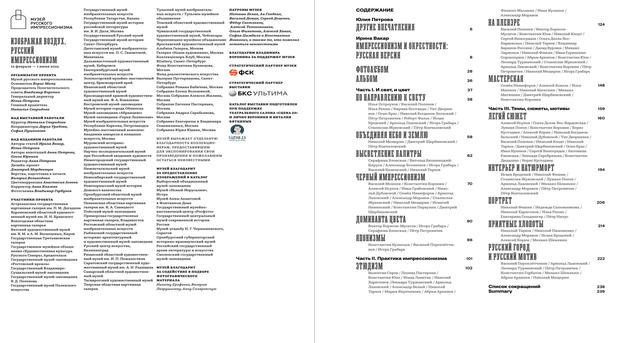 Изображая воздух. Русский импрессионизм : каталог выставки. — М. : Музей русского импрессионизма, 2025. — 240 с. : ил. ISBN 978-5-6053247-0-6