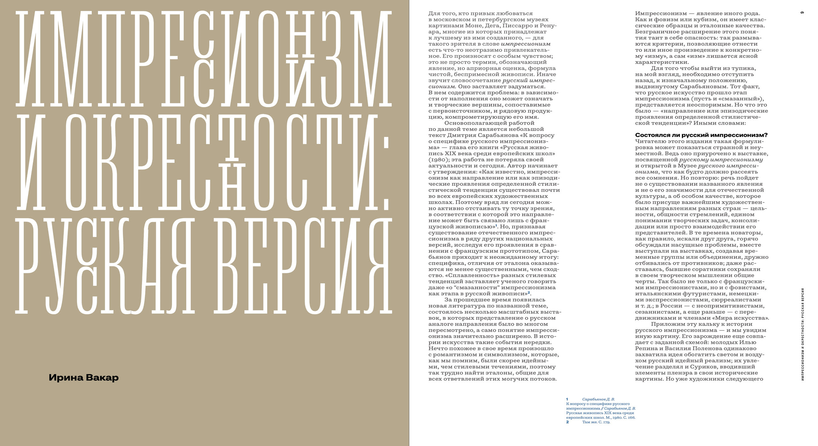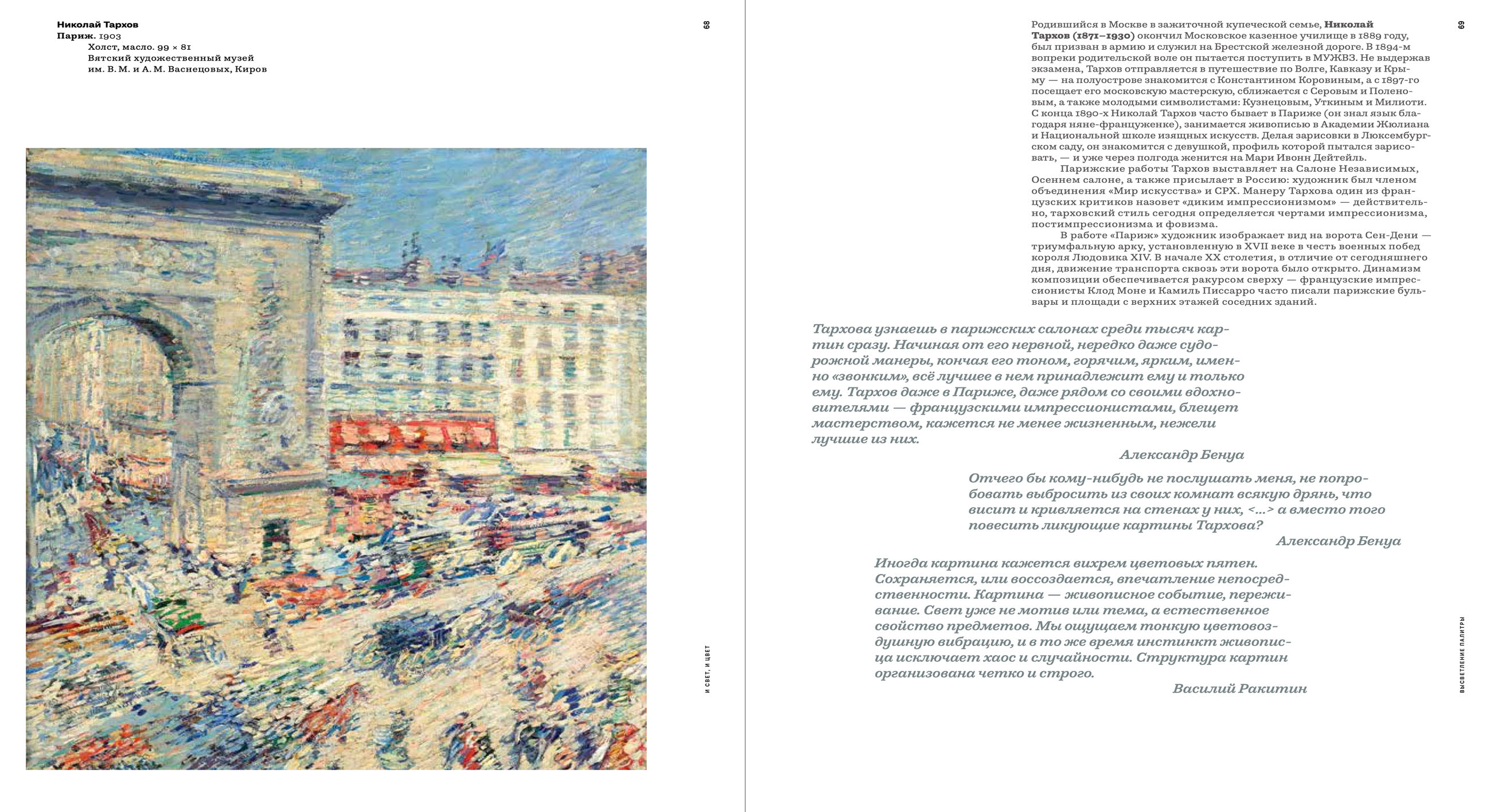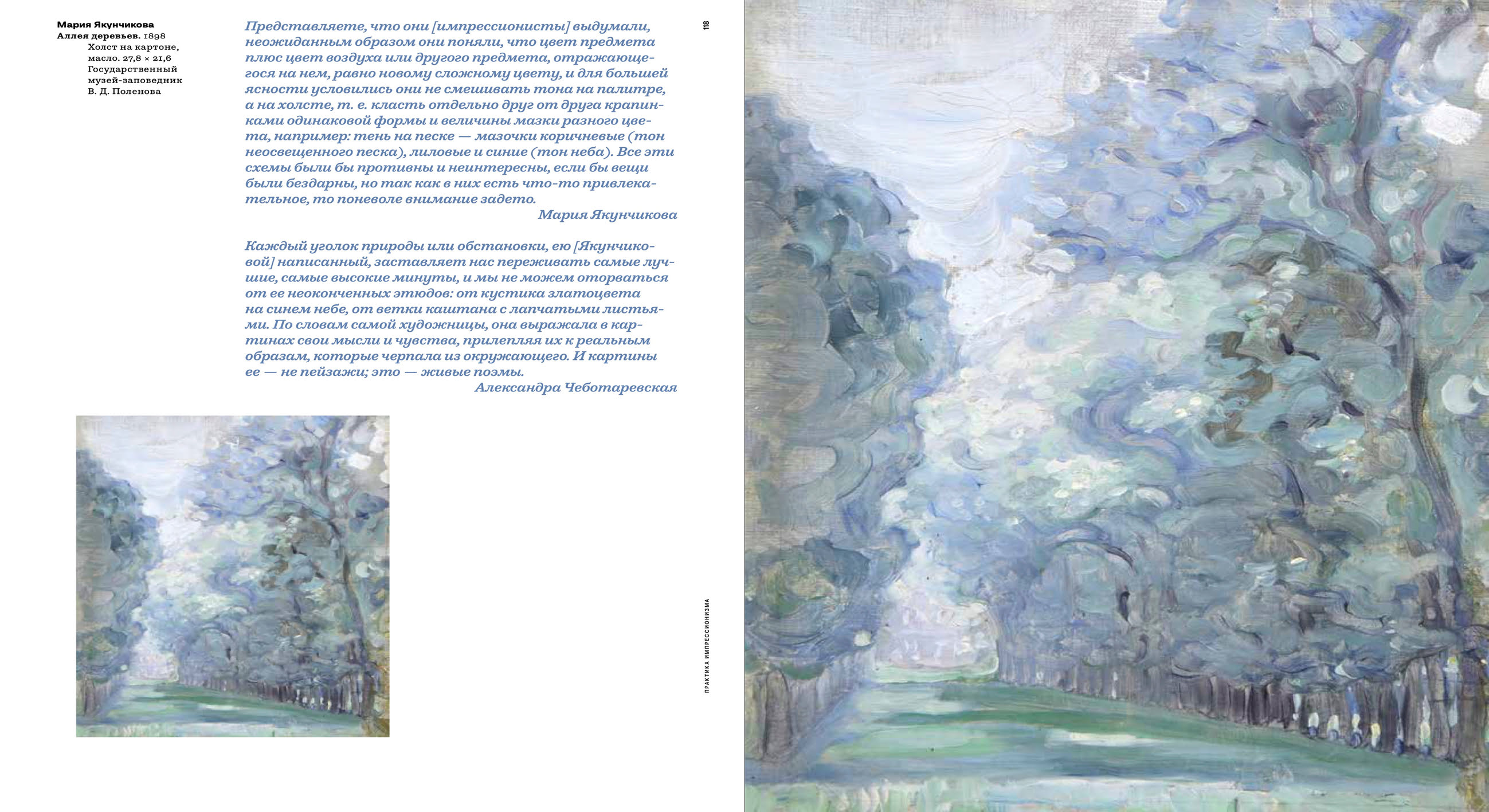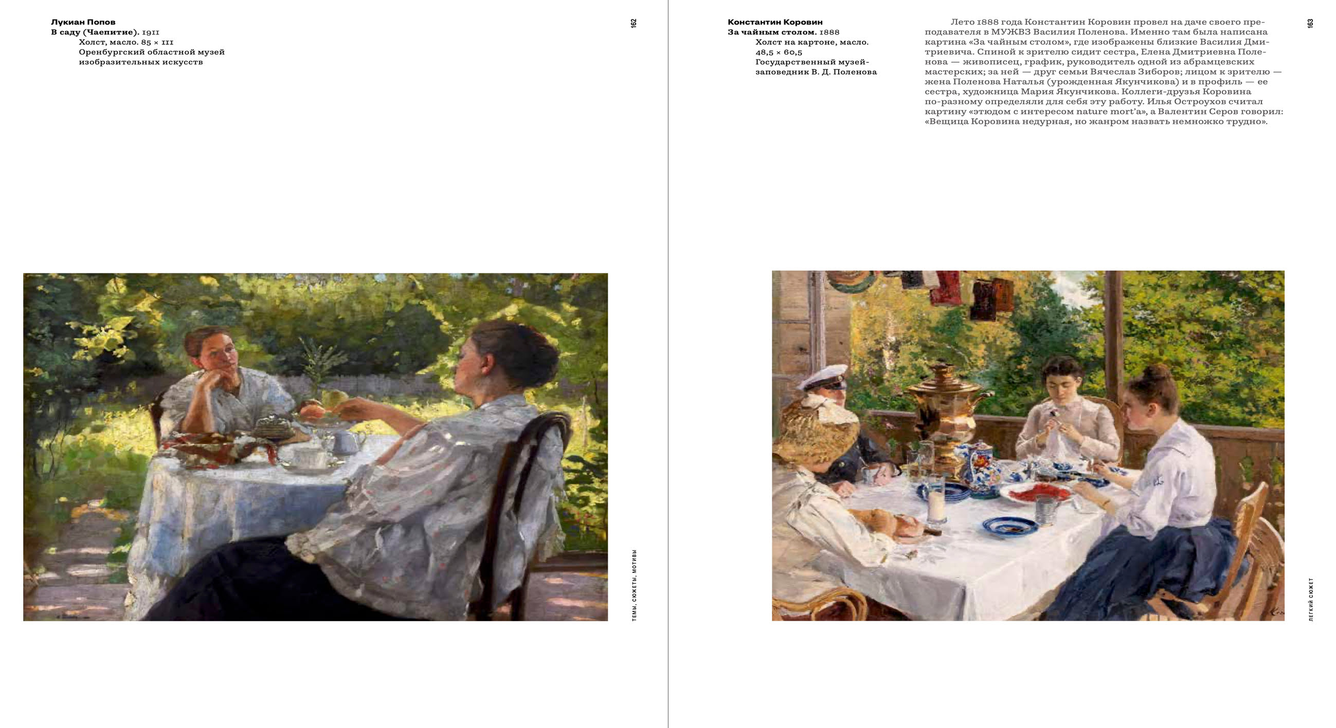 Альбомная часть издания сопровождается биографическими комментариями, фотографиями художников и статьей ведущего специалиста по истории русского импрессионизма Ирины Вакар.