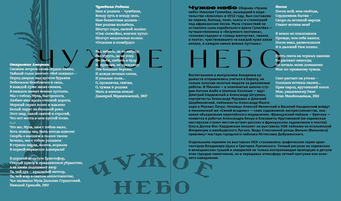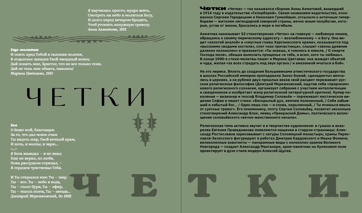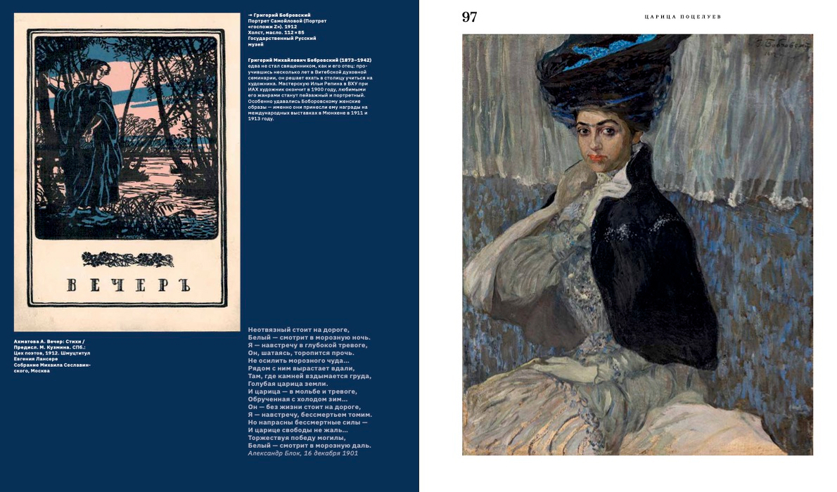 1900–1910-х годов: «Четки», «Камень», «Снежная маска»... Строки Анны Ахматовой, Николая Гумилёва, Сергея Есенина, Марины Цветаевой становятся поэтическими комментариями к работам художников.