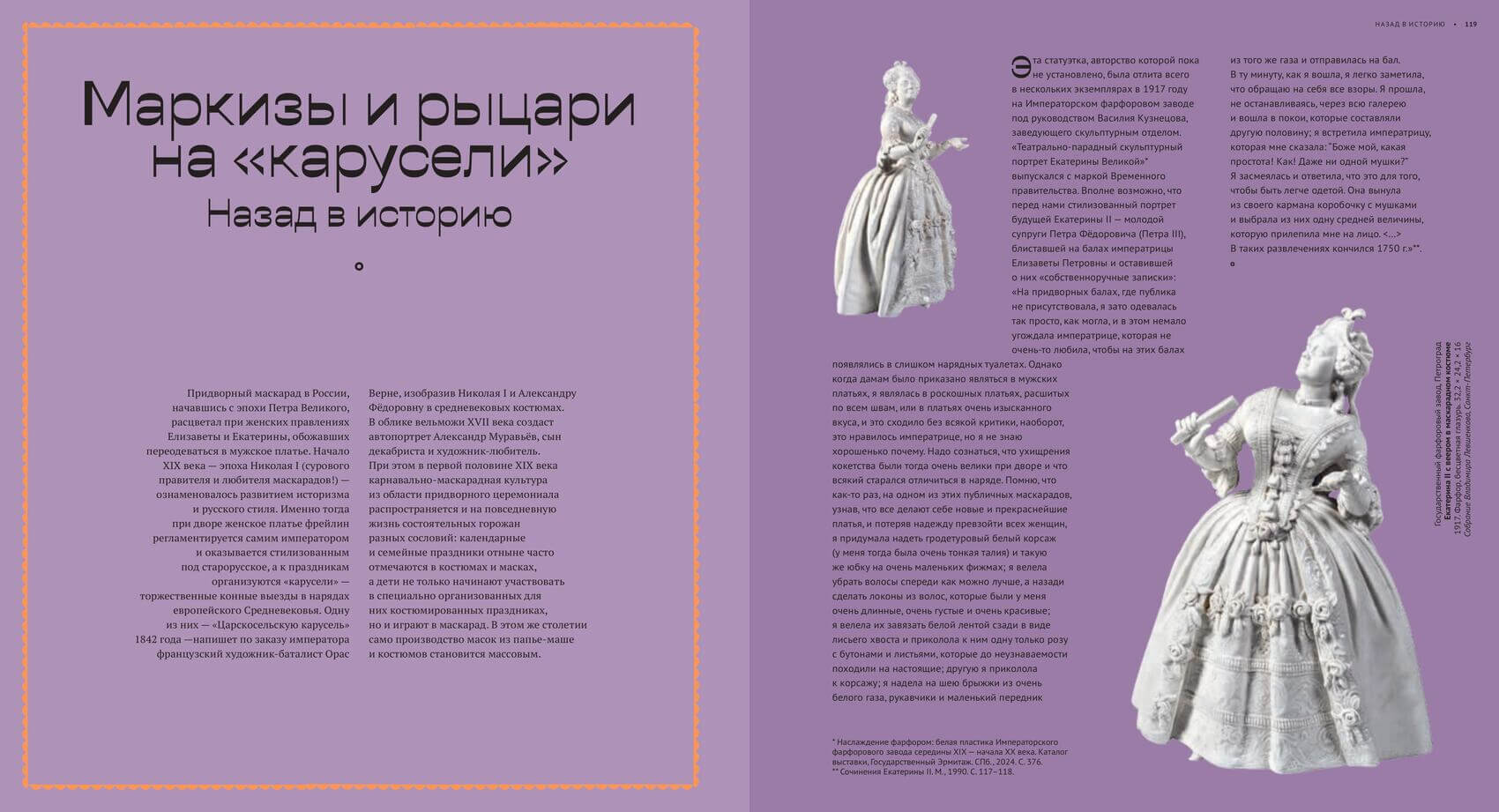 • статьей историка моды Ольги Хорошиловой о петербургских маскарадах Серебряного века;