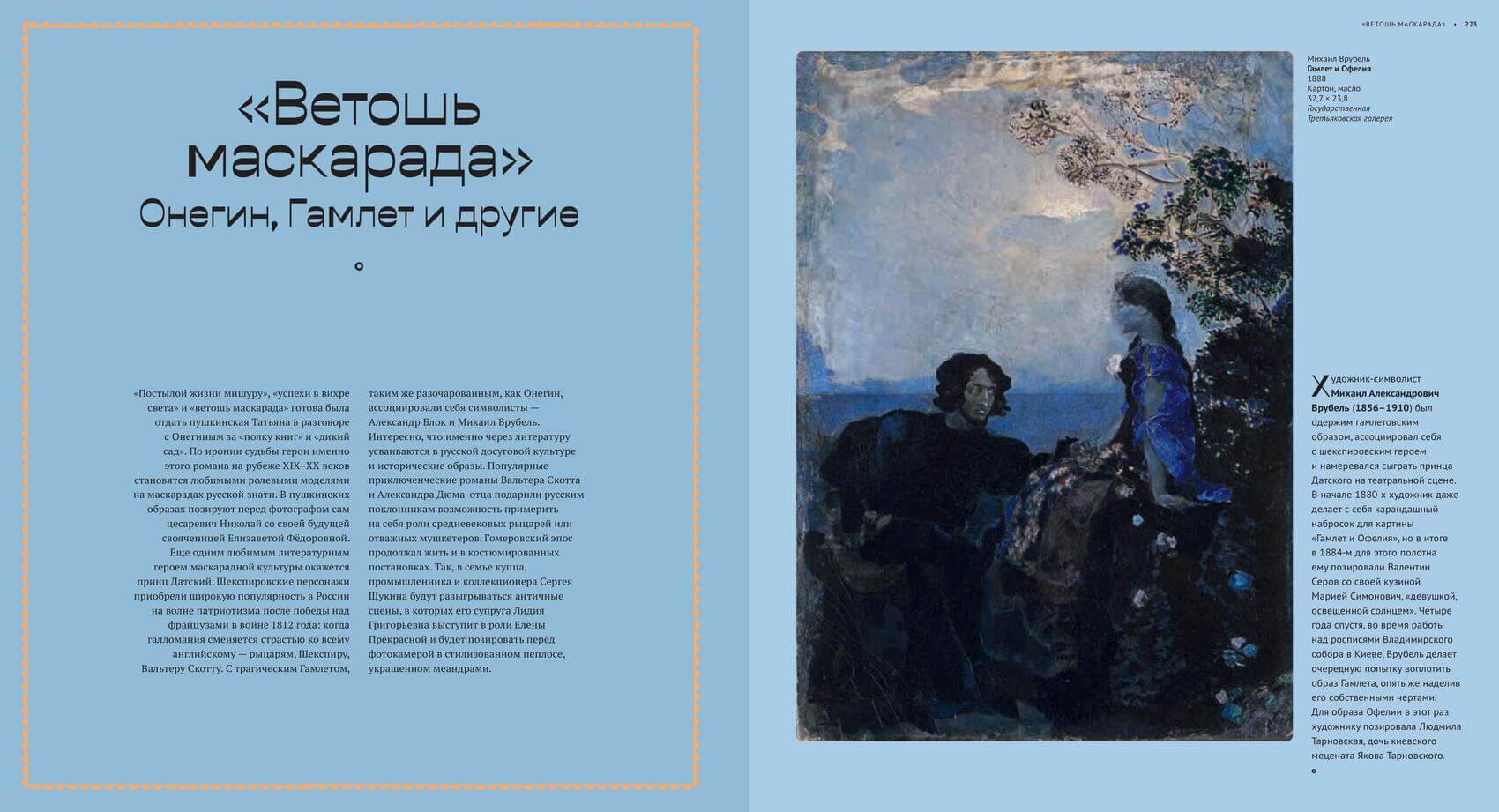 На страницах книги читателей ждут герои маскарадов — маркизы и рыцари, арлекины и пьеро, скоморохи и петрушки, Гамлеты и Онегины, представленные в живописи, графике и скульптуре.