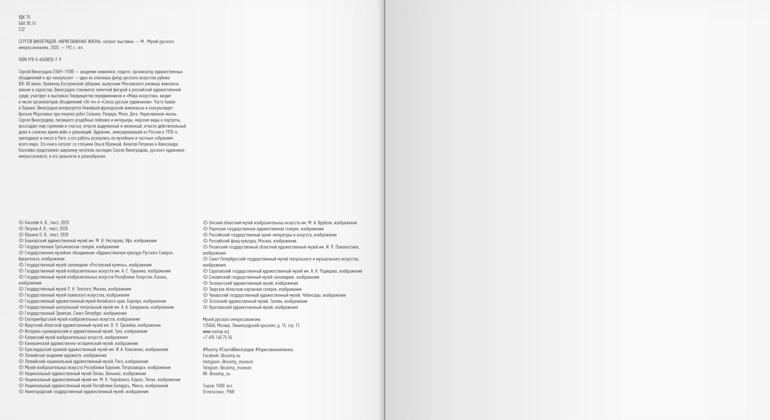 Сергей Виноградов. Нарисованная жизнь: каталог выставки. — М.: Музей русского импрессионизма, 2020. — 192 с.: ил. 240 × 270 мм. ISBN 978-5-6040830-7-9