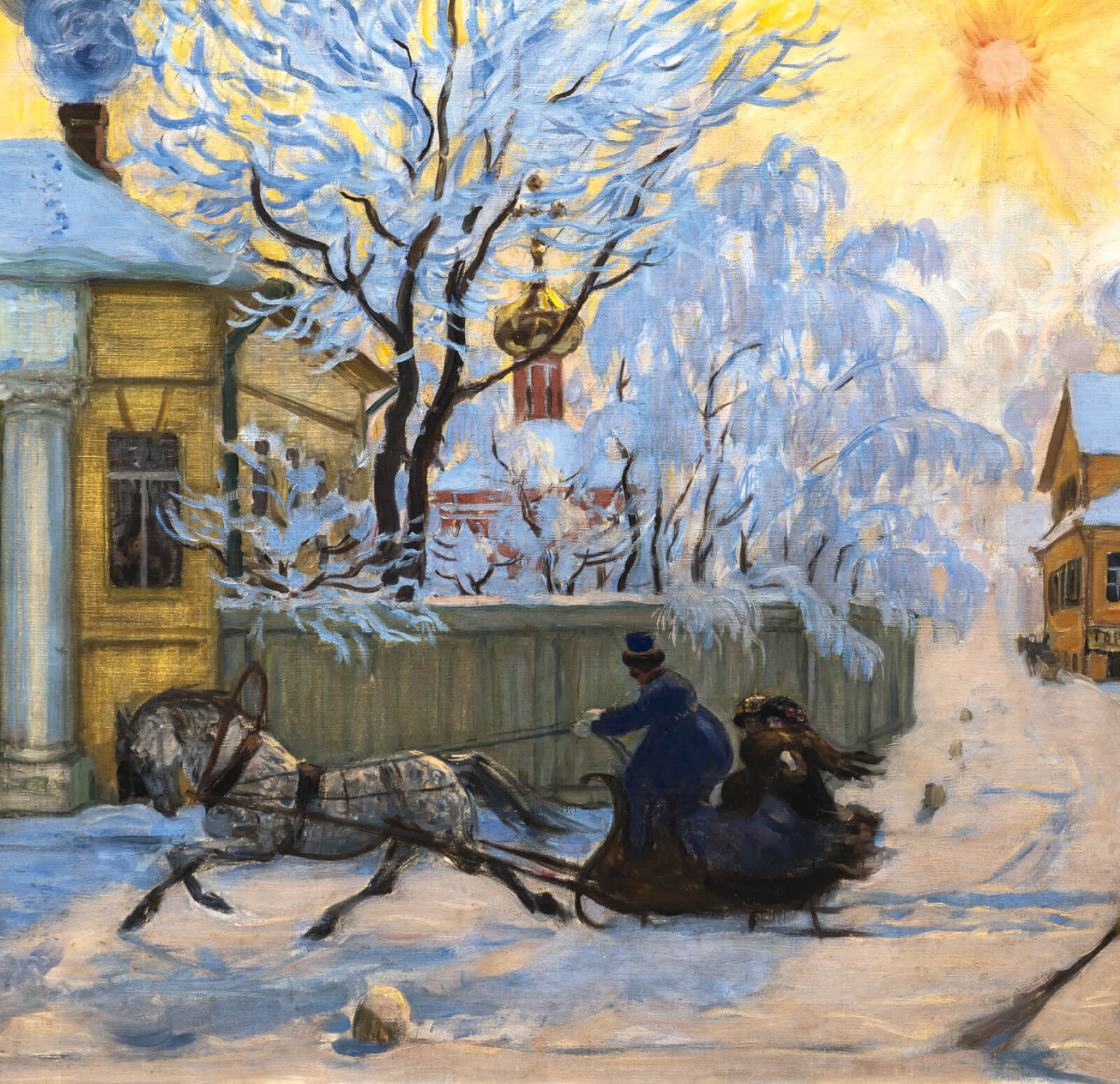 06 января — Зимний пейзаж акрилом по мотивам картины «Морозный день» Бориса Кустодиева