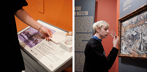 Тактильные станции с ароматами и объемными копиями к выставке «Группа „13“. В переулках эпохи» изготовлены при поддержке партнера инклюзивной программы музея — Благотворительного фонда «Искусство, наука и спорт» в рамках программы поддержки людей с нарушением зрения «Особый взгляд».