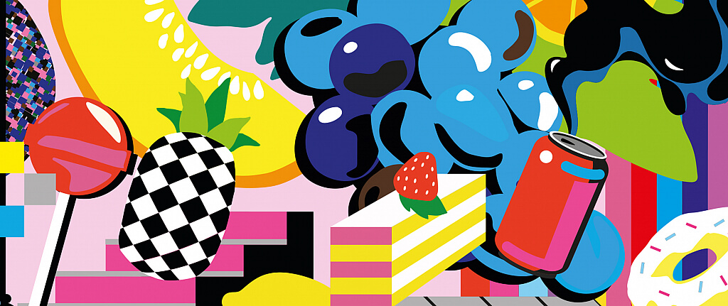 Панно на стыке жанров было придумано и создано творческой студией «Ластик» под руководством художника Алексея Платонова, известного своими масштабными работами из пластика. Сюжет в стиле поп-арт совмещает в себе множество образов и паттернов — фрукты и овощи, разнообразная еда и кусающие ее рты, столовые приборы, авоськи и даже тележка. В работе используется 15 цветов и оттенков, под каждый из которых специально отбирался материал из вторичного сырья.