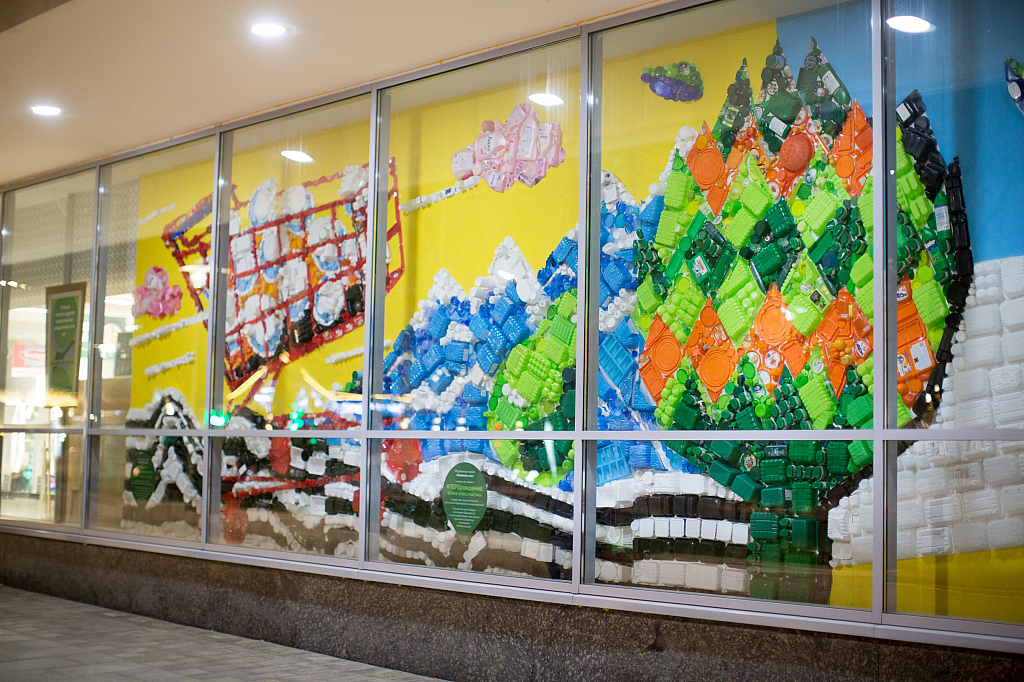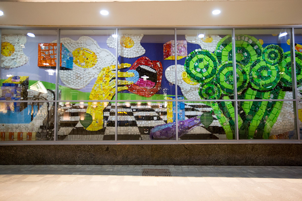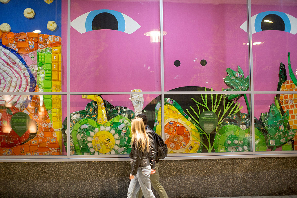 Во флагманском супермаркете торговой сети «Перекресток» по адресу улица Большая Полянка, дом 28, корпус 1 состоялось открытие арт-объекта из пластикового вторсырья общей длиной более 62 метров.