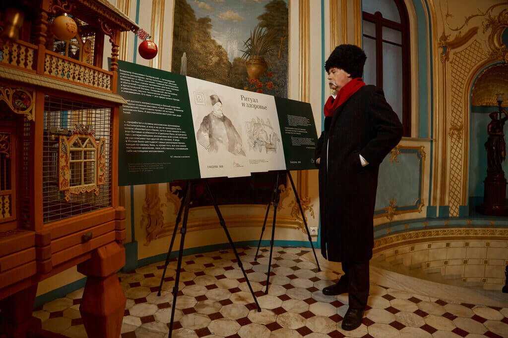 На стендах, расположенных на 1 и 2 этажах легендарных бань (Высший мужской разряд), собрали цитаты дяди Гиляя о нравах и традициях в московских парных и дополнили их атмосферными рисунками от Марины Страуме. А индивидуальное парение «По-Гиляровски» и оригинальная подача кваса отсылают к вековым традициям московских бань.